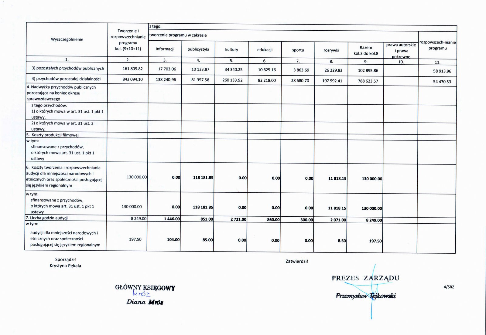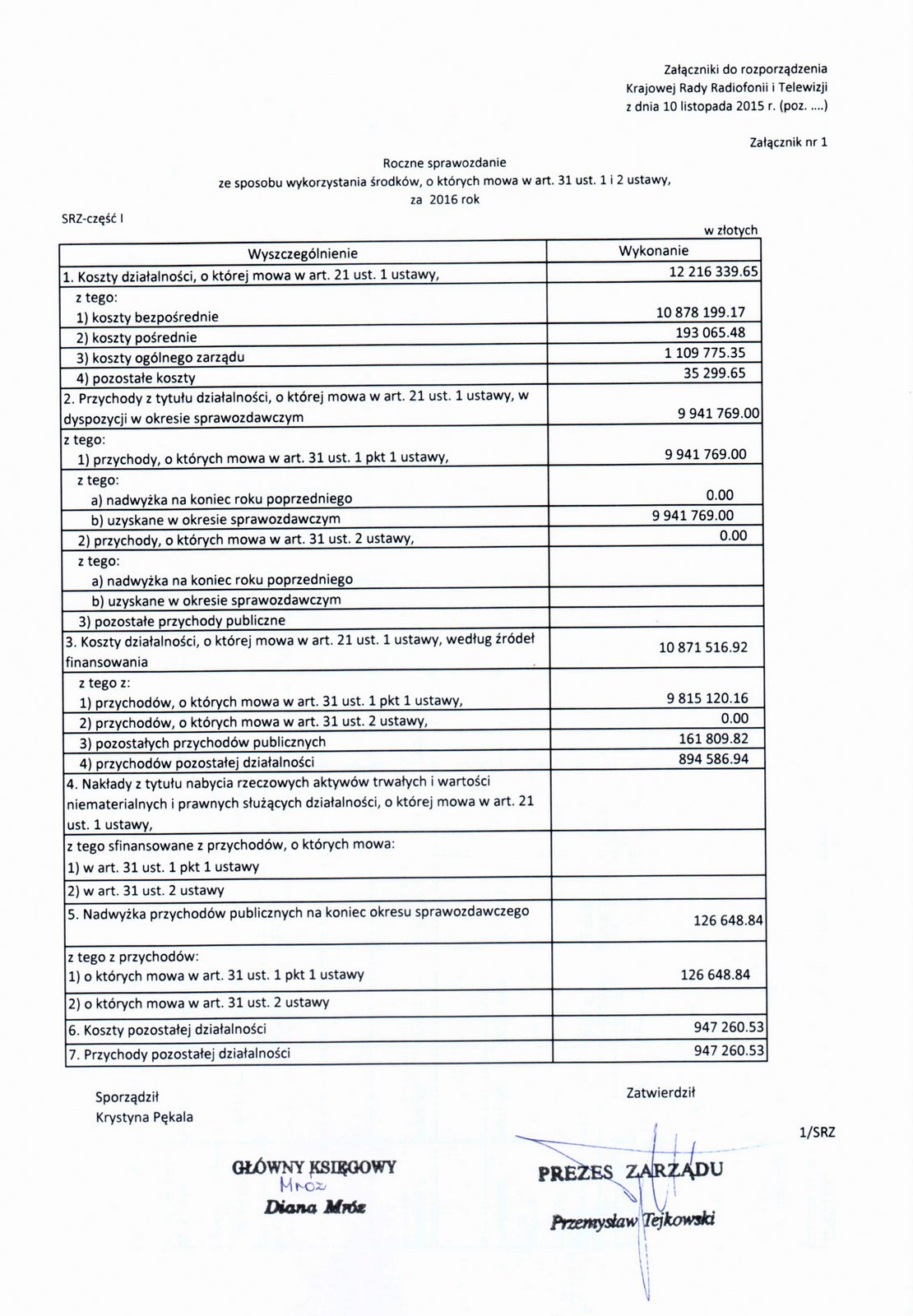 Roczne sprawozdanie zarządu spółki Polskie Radio Rzeszów S.A. ze sposobu wykorzystania środków, o których mowa w art. 31 ust. 1 i 2 ustawy z dnia 29 grudnia 1992 r. o radiofonii i telewizji za okres 01.01 - 31.12.2016 r.
